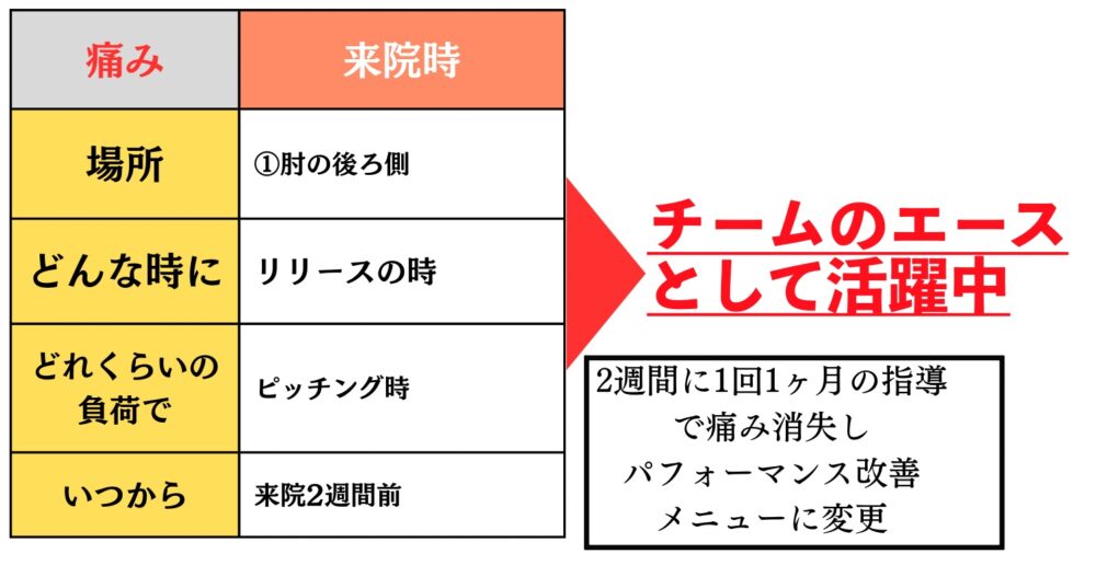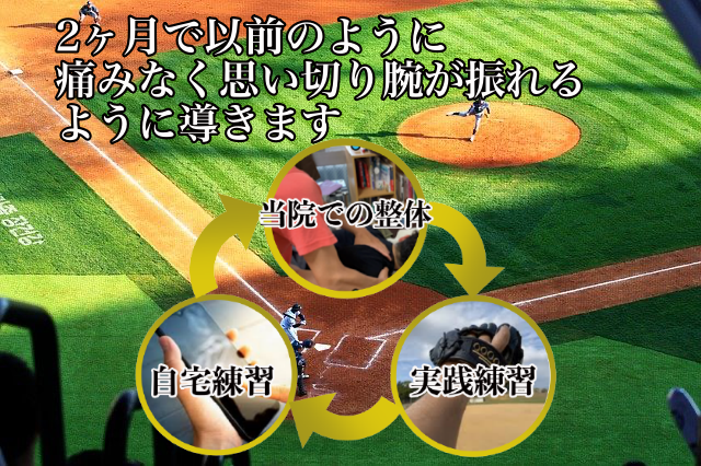 投球時の疼痛改善、現場復帰を目的としたコースです。
